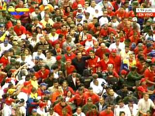 Caracas, noviembre 21 -  El presidente Hugo Chávez, quien suspendió su programa dominical para dar paso a la marcha estudiantil socialista, la presenció personalmente   a la altura de la avenida Urdaneta.