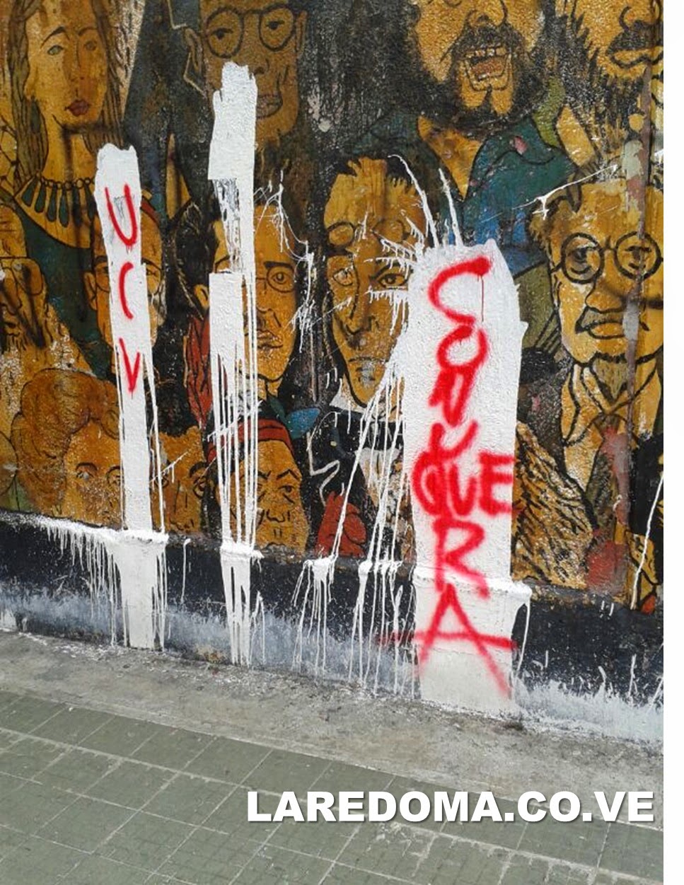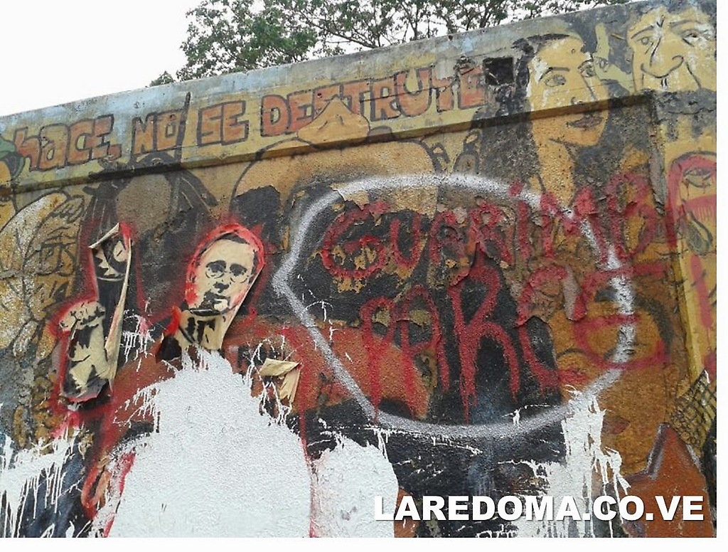 Personas que se hacen llamar estudiantes sacaron los pupitres fuera de las aulas de clase, minaron de pancarta la sede académica, obstaculizaron el tránsito en las calles aledañas, armaron guarimbas y hasta dejaron ver un gran graffity dedicado a Álvaro Uribe Vélez, rey de los falsos positivos y del paramilitarismo colombiano y consecuente conspirador contra el Gobierno Nacional de Venezuela.