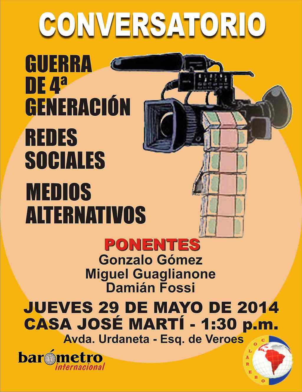 El conversatorio se denomina: "Guerra de Cuarta Generación: Redes Sociales y Medios Alternativos"