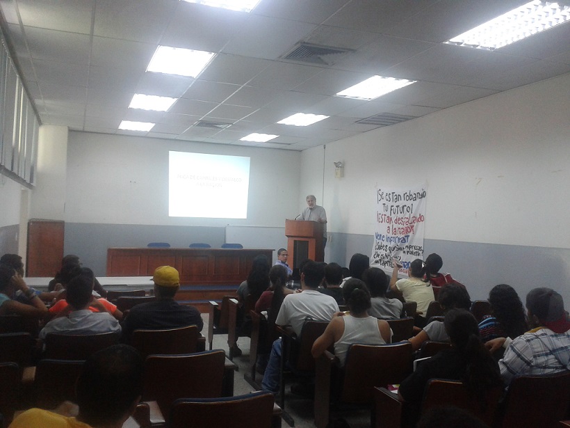 Con mucho éxito se llevó a cabo la realización del Foro: FUGA DE CAPITALES Y DESFALCO A LA NACIÓN, el cual contó con los ponentes Carlos Carcione, Economista y militante de Marea Socialista, y Juan Villegas, investigador de la ALEM-CIFO. El mismo se llevó a cabo en el salón Darío García, ubicado en el 5to piso de la Facultad de Ciencias Económicas y Sociales de la mencionada Universidad, y contó con la participación de estudiantes de todas las facultades.