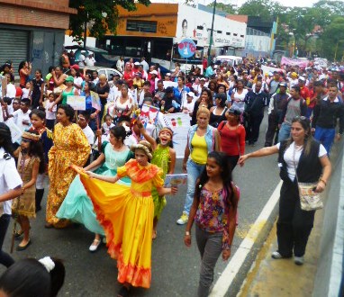 20 de septiembre de 2015.- Este viernes 18 de septiembre estudiantes,docentes, personal administrativo, obrero, padres, representantes y comunidades participaron de la Gran Caminata por la “Escuela como Territorio de Paz”, que recorrió el oeste de la ciudad para dar la bienvenida al nuevo año escolar 2015-2016.