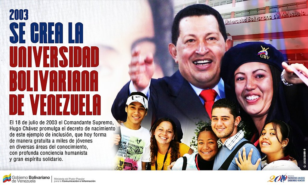 18 julio 2016 - El 18 de julio de 2003, luego de la victoria del pueblo contra el Paro Petrolero y el Golpe de Estado, el Presidente y Comandante Eterno Hugo Chávez a través de un decreto presidencial, crea la Universidad Bolivariana de Venezuela (UBV), como una alternativa al sistema educativo tradicional y bajo el concepto de contribuir en la transformación de la realidad nacional y latinoamericana.