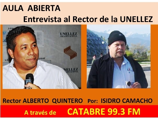 El profesor Isidro Camacho quien es miembro del personal académico de la UNELLEZ y forma parte del Grupo de Creación Intelectual Alternativa Contrahegemónica Universitaria (GCIACU), en una edición especial del programa Aula Abierta que se trasmite en Barinas por la radio comunitaria CATABRE 99.3 FM, entrevista en esta oportunidad el rector de la UNELLEZ el Doctor Alberto Quintero. En esta ocasión se contó con el apoyo del equipo de audiovisuales de esa universidad, en especial del compañero Pedro Hernández.