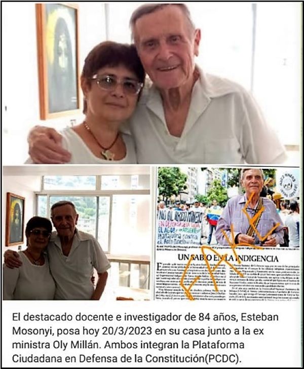 Con un mensaje de voz y una foto junto a la ex ministra Oly Millán, el destacado profesor Esteban Mosonyi desmintió que se encuentre en la indigencia y que no esté produciendo intelectualmente debido a una penosa situación económica.