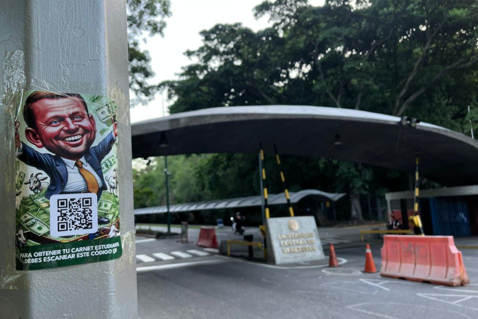 Con carteles y caricaturas pegadas en los pasillos de la Universidad Central de Venezuela (UCV) este martes 13 de mayo, la comunidad universitaria denunció la crisis de la institución y exigió respuesta a las autoridades.