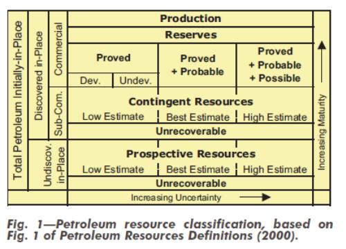 Este debate político más que técnico puede evaluarse dentro del sistema de clasificación de recursos acordado por las sociedades geológicas e ingenieriles de petróleo norteamericanas e internacionales, con el cual se pueden medir las probabilidades y certezas de las estimaciones que se debaten, y que insertamos de seguidas: