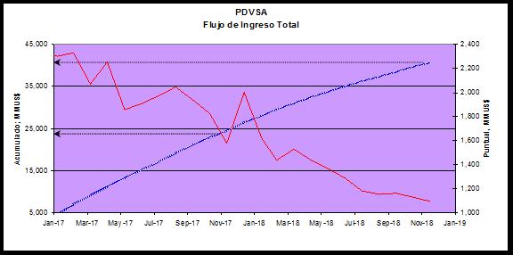 Sin embargo, no hay que perder de vista que entre los ingresos reportados por PDVSA se incluye el "loop reciclado" de crudo y productos que se han venido incrementalmente importando y que representan erogación, más no ingresos netos. En dicho caso al descontar dichos costos, los ingresos totales 2017 podrían ceder hasta US$24.4 millardo, mientras que los relativos a 2018 estarían por el rango de US$16.3 millardo según cálculos conservadores.