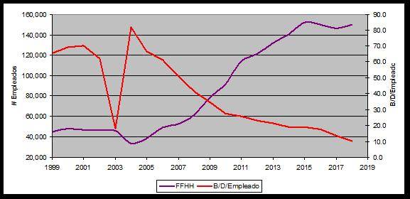 Con la llegada de cada proceso electoral se expandía de forma indiscriminada su fuerza hombre, tornándola cada vez más improductiva, más ineficiente y más vulnerable. Es así como bajo la dupla Ramírez-Del Pino, su población escaló desde unos 38.518 en 2004 a 78.739 en 2008, pasando luego a 152.072 en 2014. Se duplicaba el personal cada 4 @ 6 años mientras que su producción se abatía sostenidamente, promoviendo el desplome de la productividad por empleado desde 81 B/D/empleado en 2004 a menos de 20 B/D/empleado en 2014, un derrumbe neto del 75% en productividad, mientras en el resto de mundo el promedio supera los 100 B/D/empleado, incluso en empresas nacionales. Todo apuntaba a la segura e inaudita descapitalización de una industria petrolera en plena producción y en medio del apogeo del barril, pero una industria maltratada y superpoblada.