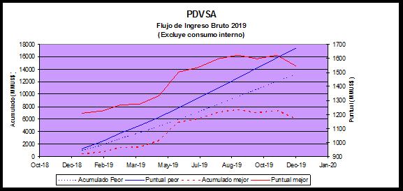 Mirando ya al 2019 y sustentado en los escenarios antes señalados, el perfil de caja no arroja esperanza de mejora alguna, sugiriendo un nivel de ingreso total al cierre de año entre US$17 y US$13 mil millones, con lo cual los ingresos netos se verán severamente asfixiados. Todo dependerá de cuanto de esa producción comprometida como pago en especie a los acreedores de las empresas mixtas será verdaderamente direccionada para tal fin y no como exportación propia para generar caja. Si mantenemos la misma relación de producción mixta/propia de 57/43, ello se traduciría con total certeza en un ingreso neto negativo y en rojo para 2019, en cuyo caso, la nación no percibiría ingreso neto; al menos por concepto petrolero.
