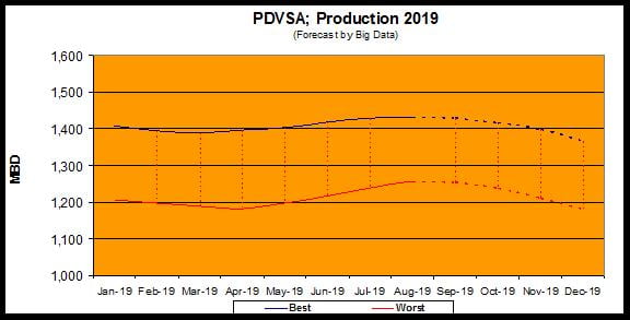 Como apuntamos antes, la economía mundial retrocederá durante 2019, incluidas Occidente, Japón e incluso China, de manera tal que el rango de maniobra para Venezuela se vera muy reducido, sobretodo por la abundante oferta proveniente de Rusia, KSA, UEA, Libia, Irak y ahora con la entrada de los "exports waivers" recientemente otorgados; también Irán. Es decir, un escenario que podríamos tildar de catastrófico para Venezuela.