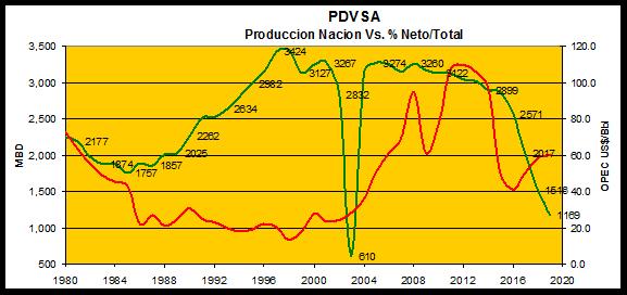 La "mitocracia" en realidad entregó PDVSA en 1999, con una producción nación de 3.127.000 B/D de la mano de Roberto Mandini y no los 3.449.000 B/D (1998) que han querido hacer ver. De hecho, ese máximo de 1997 y 1998 es altamente cuestionable y en el mejor de los casos, no fue producido por la propia PDVSA sino por las empresas de la apertura petrolera, pero a expensas de un costo de producción excesivo e inconveniente y que curiosamente impedía a nuestra industria competir en ciertos mercados, en donde sus socios extranjeros en Venezuela eran precisamente sus competidores naturales. Ese era el nivel de miopía de la "mitocracia" de entonces.