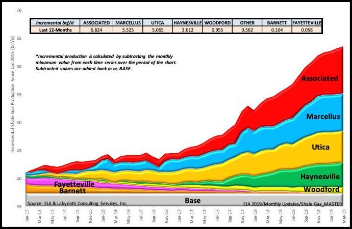 Luego de Mayo’2019 la producción de crudo de dicho país ha venido dando traspiés incapaz de sostener crecimiento y con un comportamiento errático agravado por la entrada irracional de pozos perforados pero no completados (DUC), que con el pasar del tiempo han mostrado ser cada vez menos prolíficos. A partir del periodo 12’2017 @ 12’2018; un lapso precisamente de clara alza del precio barril, se aceleró la entrada de taladros mientras que se activó consistentemente la entrada de DUC, mostrando un crecimiento en la producción que demostró ser perjudicial. La estrategia de aceleración mostró ser nociva para los activos de "shale oil", al propiciar el rápido desinfle de la energía de estos complejos yacimientos y donde la producción de gas asociado pasó de unos 41.000 MMPcD al cierre de Diciembre’2014 a más de 65.000 MMPcD al cierre de Abril’2019; un aumento del casi el 60%. En los últimos 12 meses, la producción de gas ha continuado en alza consistentemente.