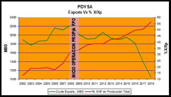 A partir de 2007 arranca la operación propia en la FPO, descuidando activos tradicionales. De forma casi inmediata se comienza a perder mercados a medida que incrementa la relación pesado-extrapesado (X/Xp) a liviano-mediano (L/M). Desde 2012 PDVSA perdió en un instante 40% de capacidad instalada en 2012 con el desastre de Amuay, forzando a la industria a triplicar gastos por cuotas de importación de crudo y refinados. La errada visión monolítica enfocada en la actividad de la FPO, acentúa la perdida de mercados y con ello la influencia regional y mundial de nuestra industria.