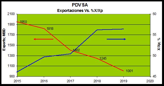 Mientras ello sucede y mientras el porcentaje de crudo pesado-extrapesado (X/Xp) en la corriente total de producción incrementa, en esa misma medida cae el potencial de exportación de nuestros crudos y se hace más dependientes la industria de ciertos clientes ya que adolece de la flexibilidad necesaria para adaptarse rápidamente a los cambios del mercado. Se ve obligada en consecuencia a dar mayores descuentos y por ende a hacerse más vulnerable.