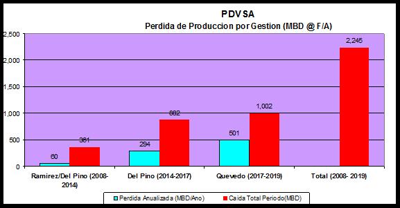 Han transcurrido algo más de dos años desde que Manuel Quevedo fue impuesto al frente de PDVSA. Su irresponsabilidad y desconocimiento de la industria se hizo evidente apenas días de haber asumido el cargo, cuando en Diciembre’2017 aseguraba que en menos de 12 meses incrementaría la producción en más de un millón de barriles día adicionales. Su tristemente celebre frase quedó acuñada en la historia de la industria como prueba indeleble de la ignorancia: "si pudimos construir más de un millones de casas, podemos recuperar más de un millón de barriles día [https://wtcradio.net/quevedo-espera-aumentar-produccion-pdvsa-millon-barriles-diarios/].