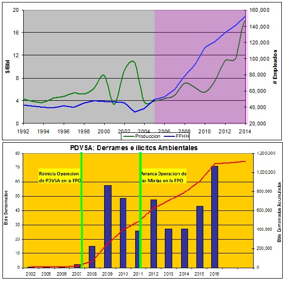 En Enero 2008, treinta y dos campos petroleros de la Faja del Orinoco pasaron oficialmente a control estatal. La consecuencia inmediata de estas pésimas decisiones y peores estrategias, se vieron reflejadas en un alza desmesurada del costo de producción, el cual pasó de unos $3.77/Bbl en 2004, a $4.3/Bbl en 2006 y más de $18/Bbl al cierre de 2015. A la producción promedio prevaleciente entre el cierre de 2007 y 2015 de 3.07 MMBD, el diferencial en el costo de producción del barril le originó a la nación perdidas acumuladas en dicho periodo por el orden de $138.000 millones por sobre costo de producción.