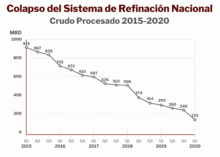 Colapso del Sistema de Refinación Nacional Crudo Procesado 2015-2020