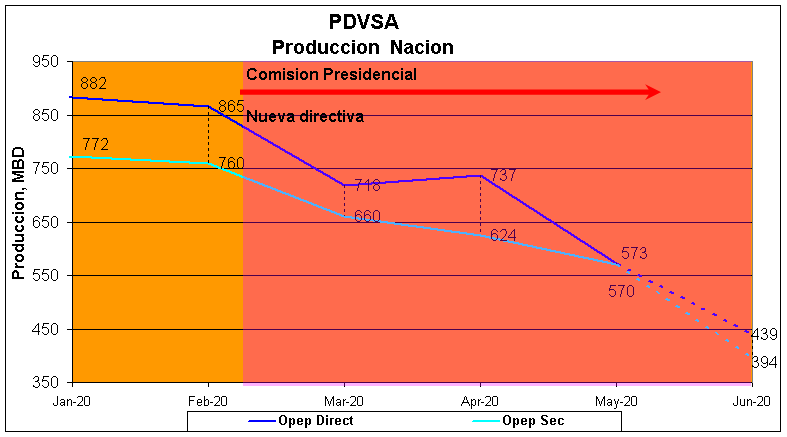 Desde la instalación de la comisión presidencial, las cosas han ido empeorando a pasos agigantados. En cuanto a producción las cifras son dramáticas, indicando un desplome de entre 400.000 a 500.000 BPD entre Febrero y Junio de acuerdo a nuestras proyecciones vía algoritmos basados en "big data", cayendo desde unos 865.000/760.000 BPD en Febrero’2020 (cifras OPEP directa/secundaria), a unas expectativas de 439.000/394.000 BPD. Otras fuentes como "Platts" predicen escenarios aun más catastróficos de hasta 280.000 BPD para el mismo periodo.