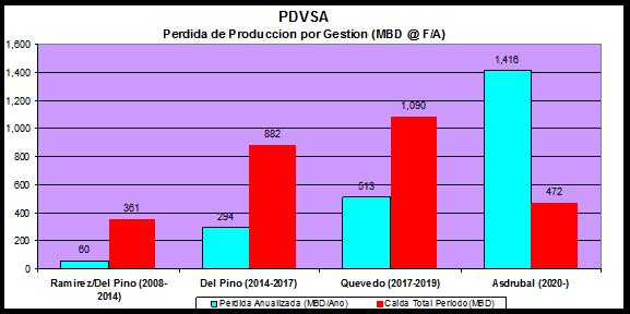 Llegado un novato Manuel Quevedo y su equipo entre 2017 y 2019, se le puso fácil a las sanciones el agudizar un problema estructural que ya venia en plena gestación. PDVSA no tenia ninguna posibilidad con M. Quevedo y eso se le advirtió al país desde el momento mismo de su ingreso [https://www.aporrea.org/energia/a257542.html]. El paso de Quevedo por la Campiña solo sirvió para desaparecer 1.090 MBPD de producción y 404.000 BPD de exportación a expensas del mercado interno, además de pasear por el mundo junto a su familia subsidiado por el estado Venezolano.