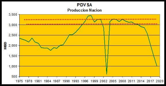 Por supuesto que ante la ausencia de actividad y recursos la producción, exportación e ingresos estaban destinados a ceder con fuerza. Eso pasa en las mejores familias, pasa hoy en los activos de lutitas [Shale oil] en los EEUU. Pero ello no desdice un hecho real; y es que aun con yacimientos envejecidos la nueva PDVSA fue capaz de sostener niveles de producción superiores a aquellos de toda la historia de la mitocracia a excepción de los años 1996-1998, aun contando con yacimientos jóvenes y una infraestructura mucho más “sanitizada”. Dicha producción entre 1996 y 1998 no era debida al resultado del esfuerzo propio de esa PDVSA, sino la adición volumétrica de sus socios, a expensas de haber duplicado el costo de producción.