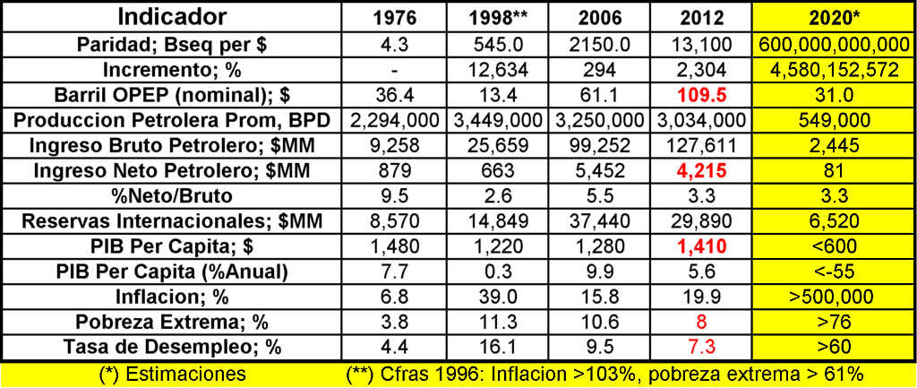 Sustrayendo los gastos operacionales y corporativos, entre $540.000 y $600.000 millones desaparecieron de los $1.560.000.000 de millones de ingreso bruto petrolero entre 1998 y 2018, además de otros $24.400 millones y $10.880 millones presuntamente desaparecidos del FONDEN y del FEM respectivamente.