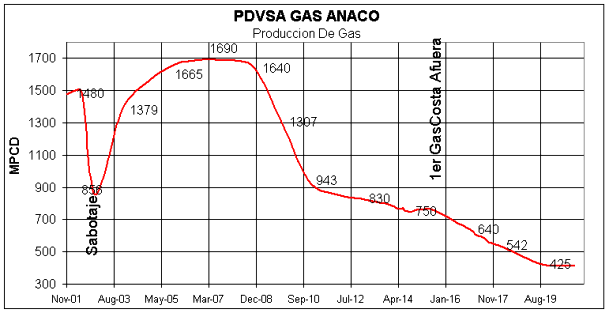 Desconoce Aissami que la producción de Santa Rosa apenas en 2010 era de 400 MMPCD y unos 3.000 BPD de crudo. También desconoce que la producción total de PDVSA GAS ANACO en 2008 era de 1.650 millones de pie cúbicos día (MMPCD), mientras que hoy apenas produce cerca de 400 @ 420 MMPCD.