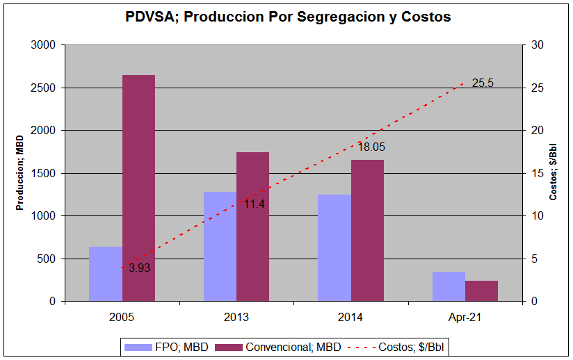 Dicha visión de Ramírez y su equipo es precisamente la responsable, de que PDVSA se halla adentrado hacia un barril, cuyo costo de producción hoy no compite con la producción de México y Colombia; y pronto tampoco con Guyana.