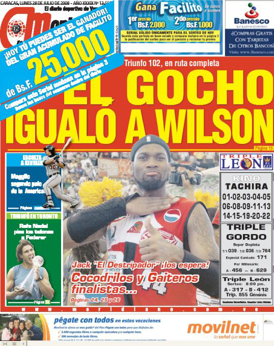 Caracas 28 julio 2008 (Aporrea.org).- Para el Diario Meridiano, un medio que se supone especializado en el deporte, no fue noticia el hecho que nuestras muchachas de la selección nacional de softbol ganaran ayer ante la poderosa selección de Cuba, del brazo de la estelar Mariangee Bogado con un soberbio no hit no run en un apretado juego que se decidió por una sola carrera.
