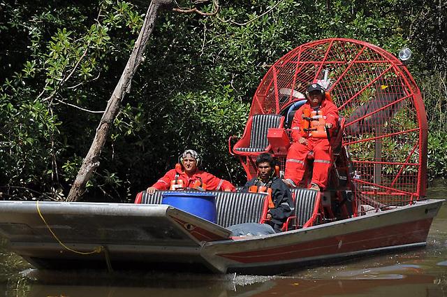 Ramírez indicó que para acelerar las labores de recolección se están empleando aerobotes conocidos como lanchas pantaneras, para transportar todo el material que se recoge en el río.