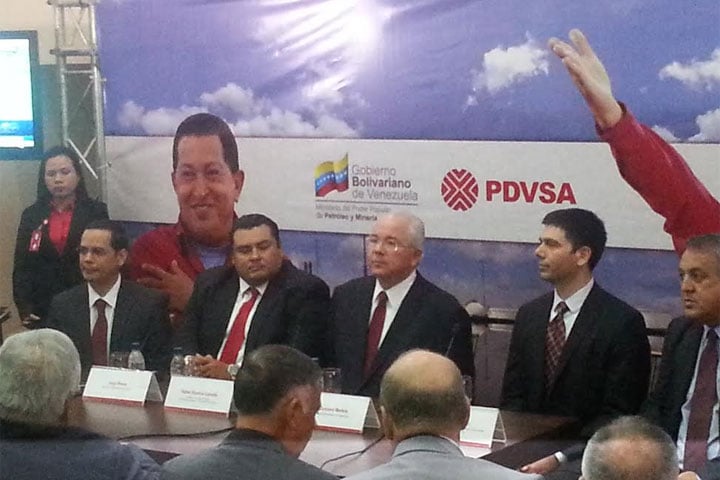 21-05-14.-El ministro para el Petróleo y Minería, Rafael Ramírez, firmó convenios con los representantes de las empresas Schlumberger, Halliburton y Weatherford, la tarde de este miércoles, durante la conferencia Latinoamericana del Caribe de Ingeniería de Petróleo, desde el Palacio de Eventos.