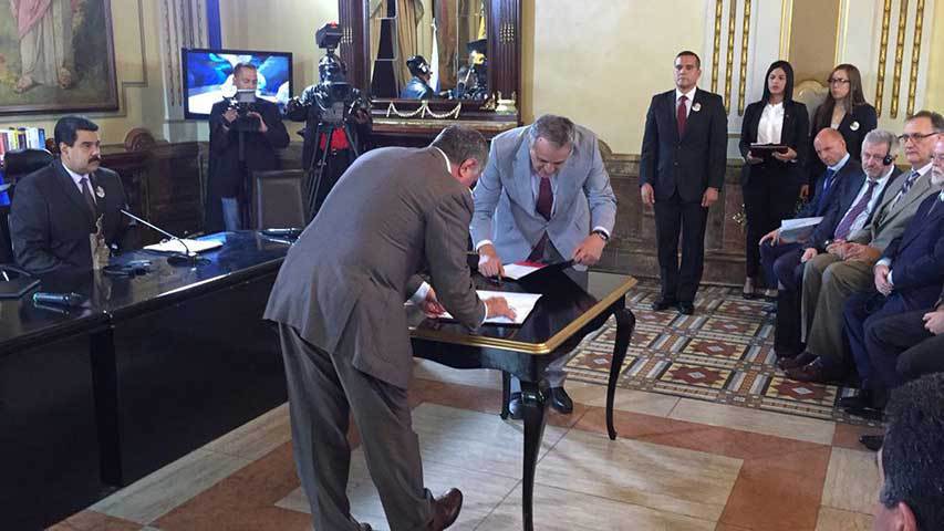 El acto se realizó en el Salón Simón Bolívar del Palacio de Miraflores, donde participaron el ministro del Poder Popular para Petróleo y Minería, Eulogio del Pino e Igor Sechín, presidente de Rosneft.