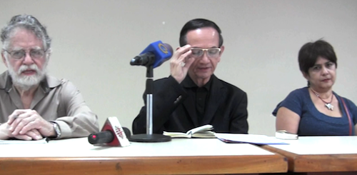 Márquez estuvo acompañado en la rueda de prensa por Héctor Navarro y Oly Millán (también ex ministros de Hugo Chávez), así como por Gonzalo Gómez (de Marea Socialista) y por Edgardo Lander y Santiago Arconada, todos integrantes de la Plataforma.