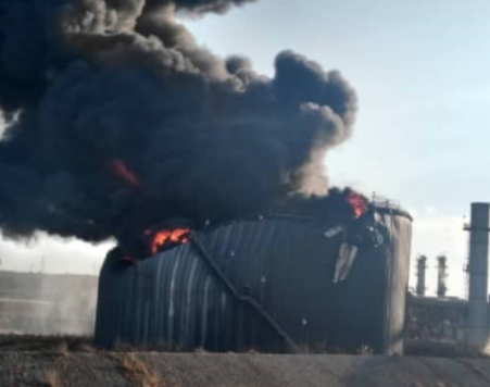 01-04-20.-Un incendio se registró en horas de la tarde de este martes en el techo del tanque Nro 10 en el mejorador de Petropiar situado en el Complejo Criogénico José Antonio Anzoátegui