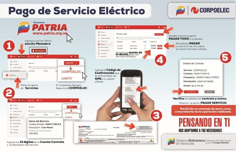 Así puedes pagar servicio de Corpoelec desde la plataforma Patria
