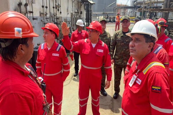 El también presidente de PDVSA acompañado por el vicepresidente de Refinación, Gustavo Boadas, y el subgerente general del CRP, Eleazar Soriano, supervisó el funcionamiento de las plantas y del sistema de procesamiento.