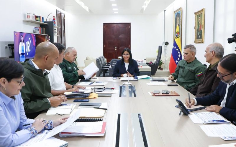 03-05-25.-La vicepresidenta Delcy Rodríguez llevó a cabo un encuentro con los vicepresidentes sectoriales, donde se acordó de forma unánime extender por dos semanas más el ajuste de horario laboral para la Administración Pública de Venezuela, a razón de la emergencia climática.