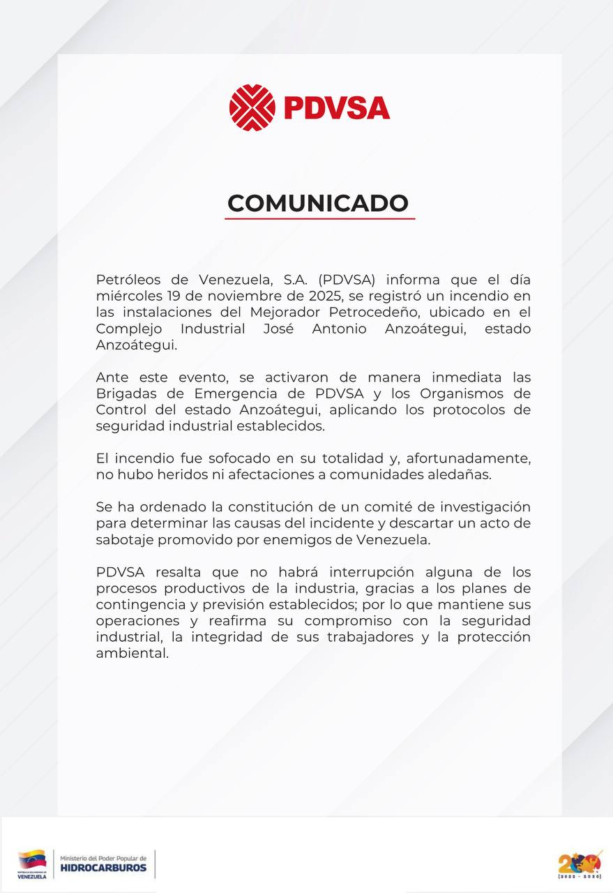 A pesar de lo ocurrido, la petrolera venezolana reafirma su compromiso con la seguridad operacional y la protección del ambiente, al tiempo que garantiza la continuidad de sus procesos productivos.