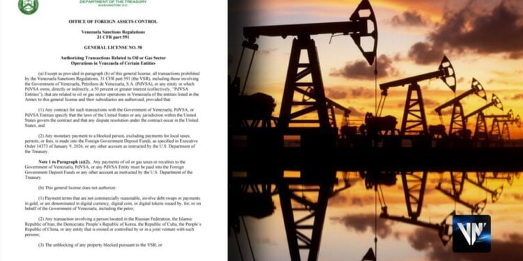 La Licencia General Nro. 50 permite todas las transacciones prohibidas anteriormente por el Reglamento de Sanciones a Venezuela (VSR) que involucren al Gobierno de Venezuela, a Petróleos de Venezuela, S.A. (PDVSA) o a sus entidades subsidiarias (con participación del 50% o más), siempre que dichas operaciones estén vinculadas a las actividades petroleras o gasíferas de las entidades enumeradas en el anexo de la licencia.
