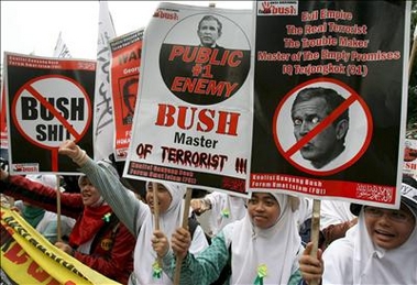 Bush "asesino" y "criminal de guerra": numerosas protestas contra la visita de Bush a Indonesia