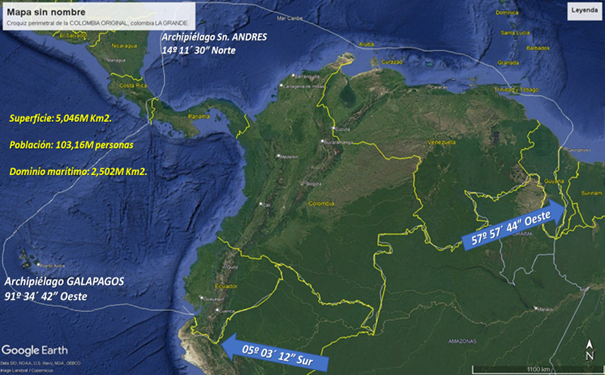 1.1.- Un gran espacio geográfico con territorio continental e insular, mar territorial, zona contigua, plataforma continental y zona económica exclusiva, del Mar Caribe y de los océanos Atlántico y Pacífico, de más de 5 millones de kilómetros cuadrados de superficie, con un dominio marítimo de más de 2 millones 500 mil kilómetros cuadrados;
