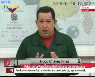 11 de diciembre de 2010.-Este viernes en la noche, el Presidente Chávez hizo una crítica a los medios del Estado, un poco molesto porque a veces se editan y no se muestra en el Sistema Nacional de Medios Públicos las interperlaciones que el pueblo le hace en sus visitas a sectores populares, refugios y sitios afectados por las lluvias. "Oigan la crítica que voy a hacer a los medios públicos: de repente llega una persona a demandar, a exigir algo, y la tendencia de nosotros es a hacer lo que llaman una edición y quitar eso de la pantalla. ¡No! ¡A mí me lo ponen cien veces! ¡Cien veces! Esa señora que reclamó el ambulatorio que se está cayendo... ¡pues vamos al ambulatorio!"