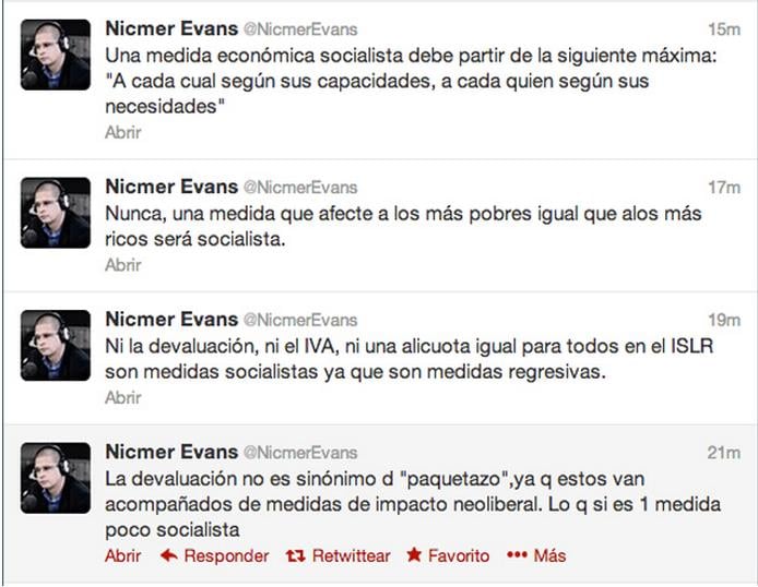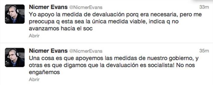 10/02/13.-El politólogo Nicmer Evans reflexionó a través de su cuenta de Twitter acerca de la nueva medida económica que anunció el día viernes el vicepresidente de Economía Financiera, Jorge Giordani, en relación a la devaluación del bolívar de un 46,5% frente al dolar estadounidense.
