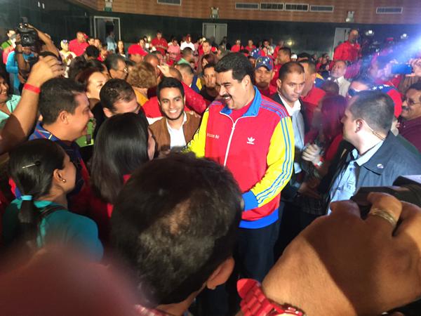04-10-15.-El presidente del Partido Socialista Unido de Venezuela y líder del Gran Polo Patriótico (GPP), Nicolás Maduro, llegó este domingo al Teatro Principal de Caracas para juramentar al Comando de Campaña para la Victoria Perfecta en las elecciones parlamentarias del próximo 6 de diciembre.