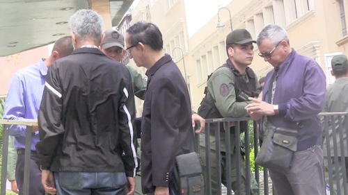 Una situación "insólita" denunciaron los integrantes del la Plataforma en Defensa de la Constitución, que se presentó ante el CNE para la entrega de su documento. Denunciaron que una institución pública como el CNE, que está obligada a atender a los ciudadanos y ciudadanas y a procesar sus trámites, esté bloqueada por la Guardia Nacional Bolivariana, hasta el punto que los documentos hay que entregarlos a los funcionarios en la calle, para que sean recibidos, firmados y sellados, porque la GNB impide la entrada al recinto, sin razones valederas (no se trata de una manifestación sino de una delegación de muy pocas personas). Esto es denegación de la debida atención, dicen. Por otro lado se quejan de que por el sólo hecho de presentarse a llevar un documentos sean filmados por los efectivos que bloquean la entrada de la ciudadanía al ente electoral en clara actitud intimidatoria. Calificaron estas condiciones de "irrespetuosas" e "indignas", "ofensivas" y "discriminatorias" para los electores.
