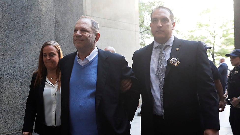 Después de declarar frente al juez Kevin McGrath en la corte penal de Manhattan, salió del lugar esposado. Medios locales declararon que Weinstein deberá pagar una fianza entre uno y dos millones de dólares, entregar su pasaporte y llevar un brazalete electrónico para seguir sus pasos.