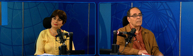 28-06-18.-La exministra de Comunas y Protección Social y exministra de Economía Popular, Oly Millán, y Héctor Navarro, profesor de la Universidad Central de Venezuela, UCV, y exministro de Energía Eléctrica y Educación durante el gobierno de Hugo Chávez, debateron durante una entrevista en Unión Radio sobre las acciones de la disidencia chavista en el gobierno del presidente Nicolás Maduro.
