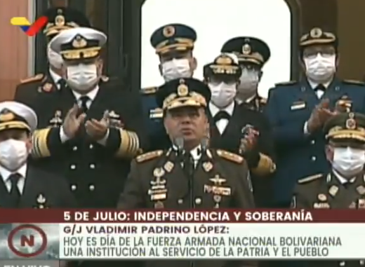 06-07-20.-Al celebrar 209 años de la firma del Acta de la Independencia, el ministro de la Defensa, Vladimir Padrino López, aseguró este domingo 5 de julio que la oposición “nunca podrá ejercer el poder político en Venezuela”.