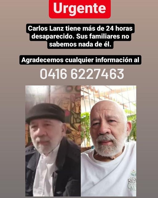 Su hijo Alex Lanz informó a través de cu cuenta Twitter la desaparición de su padre: "Desde hace al menos 24 horas mi padre Carlos Lanz se encuentra desaparecido. Algo extraño para quienes lo conocen. Mis familiares y amigos están buscándolo desde hace unas horas. Esperemos que sea una confusión".