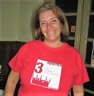 Celia Hart Santamaría, luciendo orgullosa su franela de Aporrea del 3er Aniversario de la página (celebrado en 2005). Foto tomada en Buenos Aires en 2008.