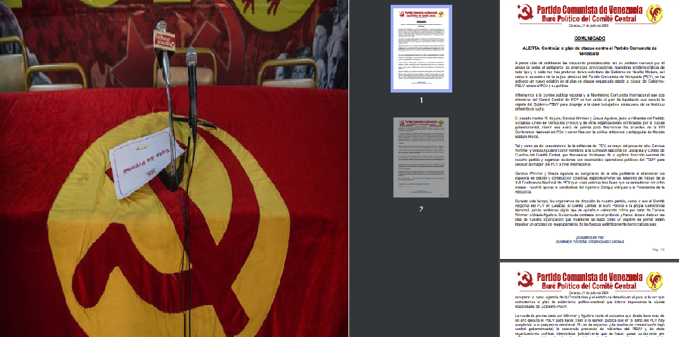 TP (https://prensapcv.wordpress.com/2024/07/23/alerta-continua-el-plan-de-ataque-contra-el-partido-comunista-de-venezuela/)